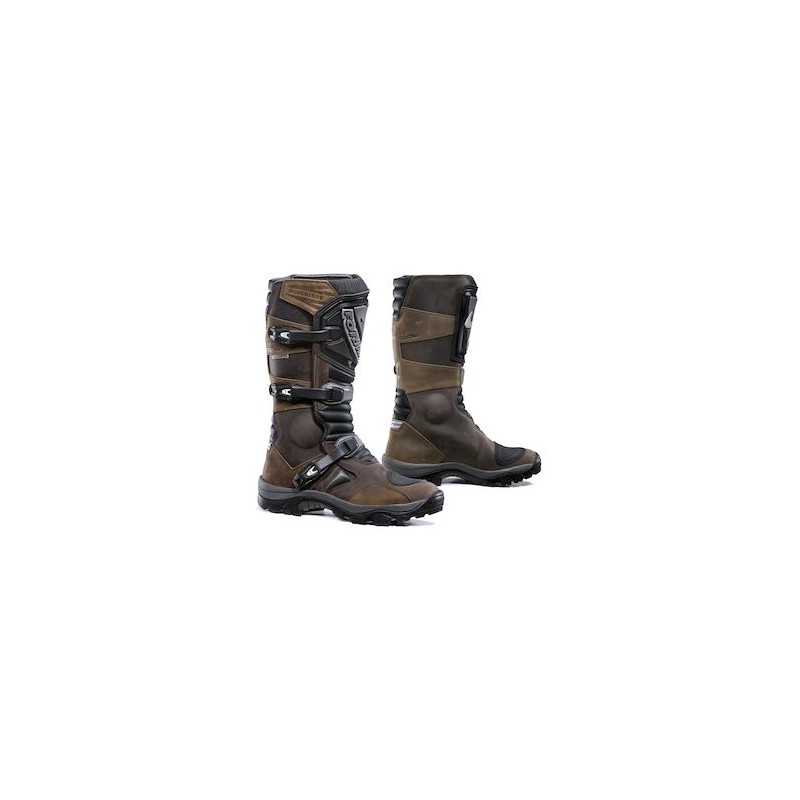 Diseñadas específicamente para ciclistas ADV, las botas Forma Adventure combinan la comodidad y flexibilidad de una bota de carretera con las características de protección y la altura completa de las botas todoterreno. Equipadas con un acabado de cuero vintage y un forro impermeable/transpirable Drytex, las botas Adventure mantienen tus pies secos sin limitar el rango de movimiento. La suela de doble densidad ofrece un excelente agarre sobre la bicicleta y brinda a los ciclistas una superficie cómoda y con agarre para caminar cuando están fuera de la bicicleta. Las inserciones y refuerzos de TPU integrados brindan protección contra lesiones por impacto y las hebillas de plástico GH irrompibles garantizan que no se quedará fuera si se vuelca.